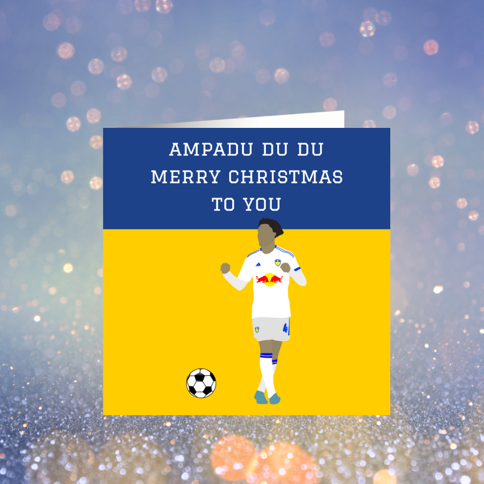 Wish your favourite LUFC fan a Merry Christmas with the Ampadu Christmas card! Featuring a festive design, it's the perfect way to send some holiday cheer. Show off your team spirit while spreading joy and wishing them a happy holiday season. Score a goal with this unique and playful card!